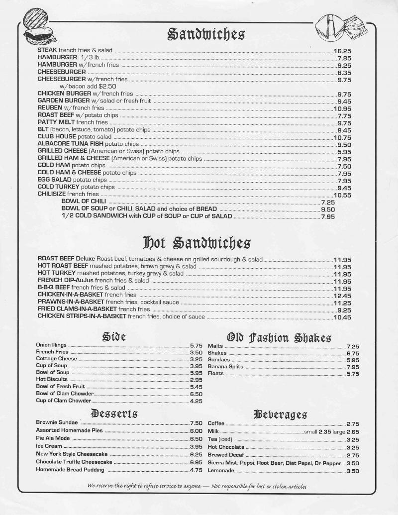 We are not responsible for lost or stolen articles.Prices subject to change without notice.